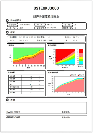 OSTEOKJ3000型超聲骨密度儀測(cè)量報(bào)告說(shuō)明