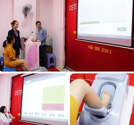 儀式上,主持人對儀器做了介紹,OSTEO KJ3000系列超聲骨密度儀,是南京科進(jìn)與韓國骨密度儀制造商多年技術(shù)合作、結(jié)合我國國情研發(fā)的新一代跟骨超聲骨密度儀,通過對足跟的測試,即可在15-20秒內(nèi)出結(jié)果,對成人骨質(zhì)疏松診斷、治療骨質(zhì)輸送藥物的療效檢測和評估有重要作用。