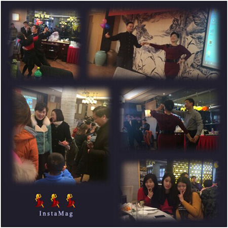 上午10:30,年會開始,員工們紛紛獻才獻藝,有的獨唱,有的合唱,還有小朋友的笛子獨奏,很是熱鬧。本次年會特邀了南京太空舞蹈隊為大家表演了華爾茲、探戈、倫巴和南京小拉舞,把文藝演出推向了高潮。11:45銷售部合唱完一首《朋友》,主持人宣布文藝演出結(jié)束。
