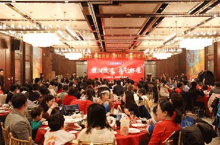 席間,領(lǐng)導(dǎo)、員工、家屬、嘉賓之間相互敬酒,互致新春問候和祝福,相互拜年,親切和睦,整個會場洋溢著熱烈歡快的氣氛。