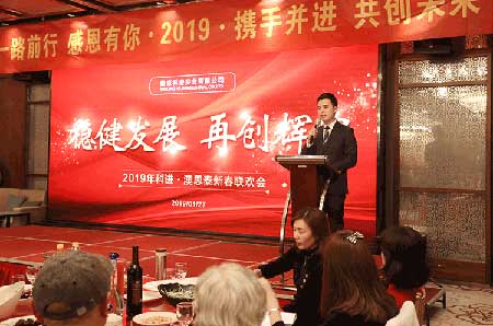 然后澳思泰總經(jīng)理俞政濤發(fā)表新年致辭,他說,2018年公司取得了驕人的業(yè)績,總銷售收入和利稅增長超過30%,共取得19項知識產(chǎn)權(quán),企業(yè)管理水平進一步提升,他代表公司感謝全體員工、家屬和各界朋友!2019年公司要加大技術(shù)創(chuàng)新力度,以滿足用戶需求為目標(biāo),加強內(nèi)部管理,“穩(wěn)健發(fā)展,再創(chuàng)輝煌”。隨后他宣布:聯(lián)歡晚會正式開始!