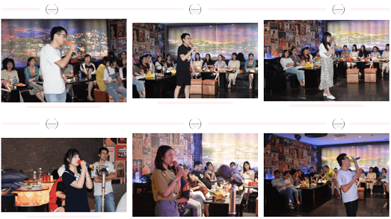 在自由歡唱的環(huán)節(jié)過后,我們迎來了本次活動(dòng)的重頭戲——K歌比賽。17位參賽選手依次放聲高歌,他們憑借各具特色的聲線,各具風(fēng)格的演唱,征服了在場(chǎng)的所有聽眾,一陣陣的掌聲雷動(dòng),將現(xiàn)場(chǎng)氣氛推向高潮。