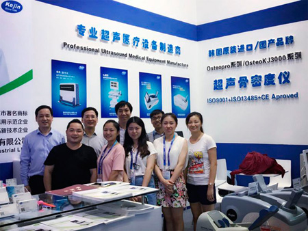 此次展會由國藥勵展展覽有限責(zé)任公司主辦,國藥勵展展覽有限責(zé)任公司承展,在深圳會展中心盛大舉行,本次展會共有來自全國各地的近500家廠商參展,展會上展出的產(chǎn)品涉及臨床診斷設(shè)備、診斷試劑、POCT、家用診斷設(shè)備等、康復(fù)器械等。展會持續(xù)到第三天和第四天仍然精彩紛呈、高熱繼續(xù),展商與專業(yè)觀眾踴躍交流的場面火爆。南京科進(jìn)也高溫不下,持續(xù)吸引了不少客戶前來咨詢產(chǎn)品。下圖為科進(jìn)俞總為客戶介紹超聲骨密度儀
