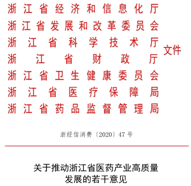 作者:互聯(lián)網(wǎng) 瀏覽:280 發(fā)布時(shí)間:2020/5/20 17:14:06近日,浙江省發(fā)展改革委、省經(jīng)信廳、省科技廳、省財(cái)政廳、省衛(wèi)生健康委、省醫(yī)保局、省藥監(jiān)局共同印發(fā)《關(guān)于推動(dòng)浙江省醫(yī)藥產(chǎn)業(yè)高質(zhì)量發(fā)展的若干意見》(下稱《意見》)。