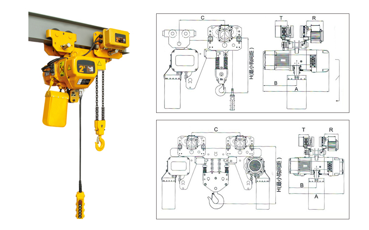 HSY低凈空環鏈電動葫蘆是超低型環鏈電動葫蘆,主要用于作業空間狹窄有限的場合,此規格有單鏈和雙鏈兩種。低凈空電動葫蘆在縮短機體與橫梁軌道間距離上具有獨特的結構。